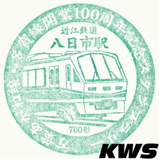 【入手日:16.10.07./掲載日:26.01.11.】 こちらは単純な駅名入りスタンプ。図柄は近江鉄道のフラグシップ的存在の700系。 |
