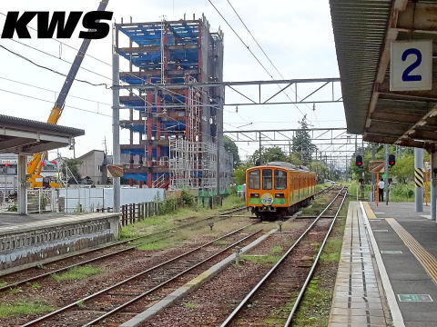 【撮影日:16.10.07./掲載日:26.01.11.】 駅構内は2面3線にホームのない中線を加えた構造。その中線には800系が停車している。写真は貴生川・近江八幡方向を見ている。本線と八日市線は構内を出るとまもなく分岐していくが、八日市線の新八日市駅との間は500mはどしか離れていない。 ◆写真の列車情報◆ 800系 モハ1809(+モハ809) |