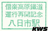 【入手日:16.10.07./掲載日:26.01.11.】 訪問時、駅には様々なスタンプが置かれていたが、その中で一番変わっていたのこがコレだと思う。信楽高原鉄道が2013(平25)年9月の台風水害(あの脱線事故ではない)による長期運休から復帰する際に作成されたものであろうが、こういうものを他社が作っていたというのは非常に珍しいように思う。それだけ地域にとって、まだ近隣の鉄道会社として大きな出来事だったんだろうなと想像する。でも同じ作るのであったら、デザイン的にもうちょっとならなかったのかなとも思うし、せめて運転再開の日付(2014(平26)年11月29日)くらいあっても良さそうなものである。 |