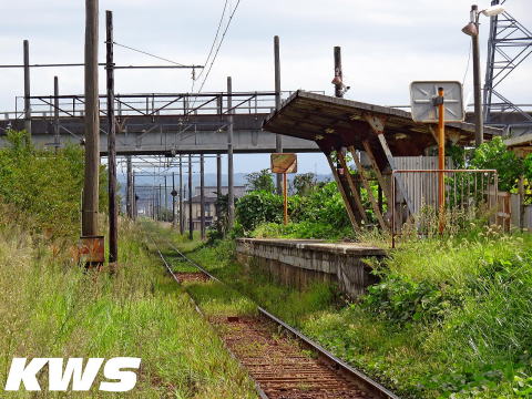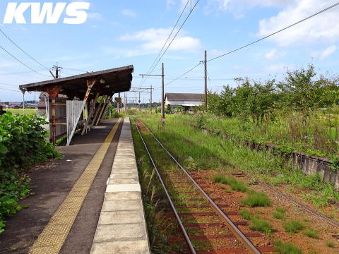 【撮影日:16.10.07./掲載日:25.12.23.】 かつては駅舎が写真の左側に建っていたようであるが、現在は駅舎は無く、ホーム屋根が掛かる壁の中央部に出入口がぽっかりと空いているだけである。当駅の敷地は北側が東近江市(2006(平18)年までは蒲生町)、南側は日野町と跨がっている。現在の駅出入口は日野町側に開けられているが、元の駅舎は蒲生町にあったため、現在はそれは引き継がれて東近江市の駅としてカウントされている。 出入口にある改札ラッチのような柵から駅を出たところは舗装もされていない。駅から少し歩いて出れば小さな住宅地がいくつかあるようだが、駅周囲には家が数軒あるだけで、基本的に周囲は田畑だけが広がるのんびりとしたロケーションである。 バブル期であった1980年代中頃には、滋賀県が当駅近くに「びわこ空港」を造る構想があったそうだ。バブル期とその後十年くらいまでは地方空港を造ろうという気運が各地にあり、福島、茨城、静岡、神戸、北九州など開港にこぎ着けたところもあったが、実現せず中止になったところも多かった。「びわこ空港」建設構想も既に中止となっているが、もし実現していれば当駅は空港への玄関駅となっていたそうで、その場合はどのような駅に変貌していたのだろうか。 |