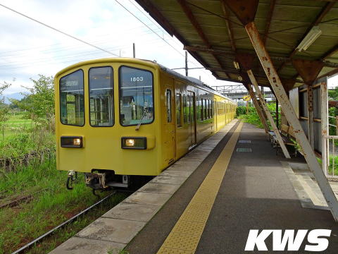 【撮影日:16.10.07./掲載日:25.12.23.】 ホームに上り電車が入線してきたところ。草生した印象の強い駅であったが、電車の乗り降りするところだけは綺麗に保たれていた。 ◆写真の列車情報◆ 800系 モハ1803(+モハ803) 1351発[普通]貴生川→米原 |
