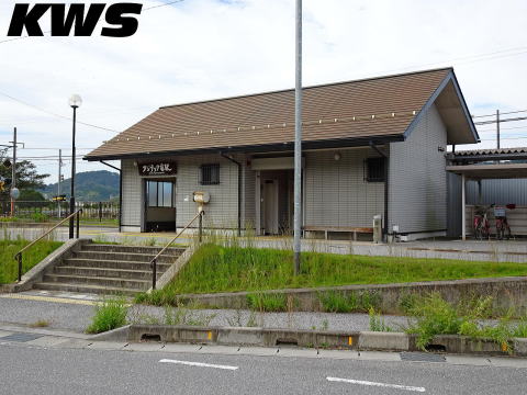 【撮影日:16.10.08./掲載日:25.10.29.】 訪問当時の近江鉄道には駅が33箇所あったが、そのうち企業名が入る駅が3駅あり(当駅の他には、スクリーン駅と京セラ前駅)、企業名駅の比率が高い。最近は副駅名入りも増え、それも企業名が入るケースが多い。 |