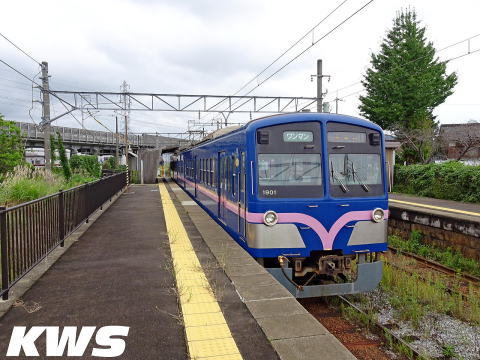 【撮影日:16.10.09./掲載日:25.11.19.】 駅を出発した900形「淡海号」編成。広告ラッピング編成を除くと、同形は独自の塗装がされているので、近江鉄道の編成の中では目立つ存在である。 ◆写真の列車情報◆ 900系 モハ1901(+モハ901) 1103発[普通]高宮→貴生川 |