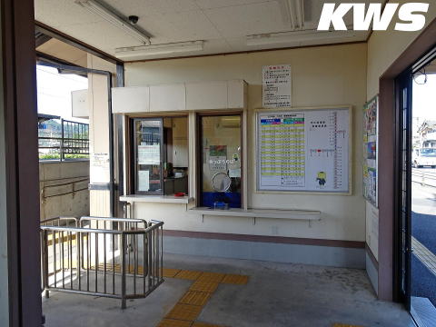 【撮影日:16.10.07./掲載日:25.11.08.】 当駅は駅員を時間帯により配置している駅で、訪問時では平日のみの7:30~8:50と15:20~16:20と、営業時間を合計しても2時間あまりと短い。しかも午後の部は集札のみで、券売の作業は午前の部にしか行われていないようだ。駅近くに県立八日市養護学校があり、営業時間もここへの通学に対応したものとなっているようだ。掲載日現在は営業時間が若干変わっているようだ。 |