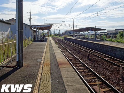 【撮影日:16.10.07./掲載日:25.11.08.】 駅舎側の上りホームの近江八幡側から八日市方向を見る。当駅は2面2線の列車交換が可能な駅となっているほか、下りホームの外側に、近江八幡側から分岐した使用されているかどうかよくわからない架線がない短い側線が分岐している。保線用なのかなぁ…。 八日市線の中間駅は太郎坊宮前駅以外はすべて列車交換設備のある駅となっている。路線距離も短く、列車密度がそれほど高くなく、貨物営業が無い路線にしてはちょっと多い気がする。それはそれで柔軟度の高いダイヤを組みやすい路線ともいえるわけだが、棒線駅に比べれば交換駅の方が施設維持にかかるお金は当然高く付く。経営の苦しい近江鉄道からすれば交換設備撤去の処断が下されても不思議では無いのだが、そんな予定は今ない。まあ棒線化した後に交換設備を復活させるのはお金もかかるのは確かだが、掲載日現在の日本の状況を考えると、この考えは今は杞憂だろう。 |