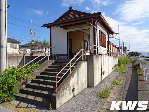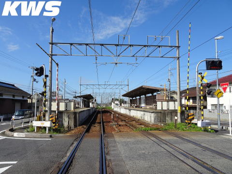 【撮影日:16.10.07./掲載日:26.04.18.】 八日市側から駅構内を見る。 当駅は開業以来長く1面1線の駅として存在していたらしいが、交換駅となった時期は不明だ。構内配線は後付け交換駅らしく上り線(写真右)が1線スルーとなっている。下り線(写真左)は下りの到着・出発にしか対応していないが、上り線は両方向の到着・出発に対応している。 |