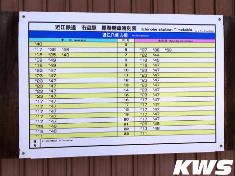 【撮影日:16.10.07./掲載日:26.04.18.】 八日市線は平日朝は時間3本、他は時間2本の設定。地方私鉄にしては本数が多く利用しやすいダイヤだ。 |