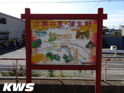 【撮影日:16.10.07./掲載日:26.04.18.】 ホームに建てられていた「万葉の里・蒲生野」の観光案内看板。 当駅から徒歩3分のところに「万葉の森 船岡山」というのがあるそうだが、東近江市のHPによれば、ここは万葉文化を記念するために整備された公園で、山頂には歌碑や、麓には大きなレリーフと万葉集にうたわれた植物を見ることができるそうだ。散歩などにはいいところらしいが、訪問者は少なく、公園の駐車場はあまり便利な場所にないという話だ。 |